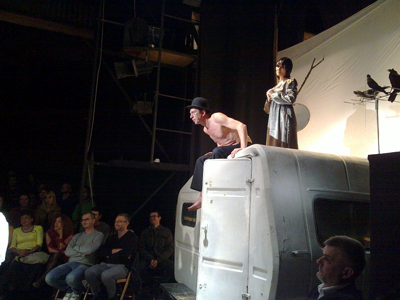 În distribuţia Teatrului Municipal Baia Mare s-au amestecat şi câţiva actori orădeni. Împreună cu băimărenii au format o echipă omogenă, cu partituri individuale bine conturate, reuşind să ilustreze delirul general de la final. Textul lui Tadeusz Sobodzianek este puternic şi adeseori violent. Violenţa sa vine doar din fundamentalism, un fundamentalism pe care îl întâlnim la tot pasul.