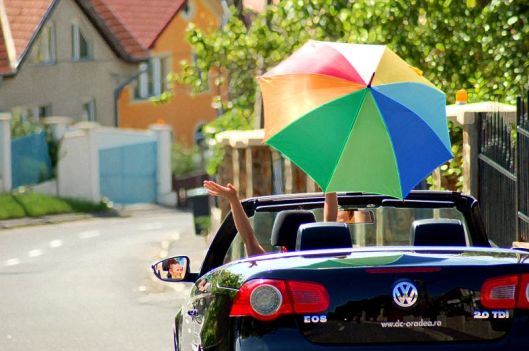 Am decapotat acoperişul Eos-ului şi l-am înlocuit cu o umbrelă multicoloră. Atenţie! Nu se recomandă la viteze mari.
