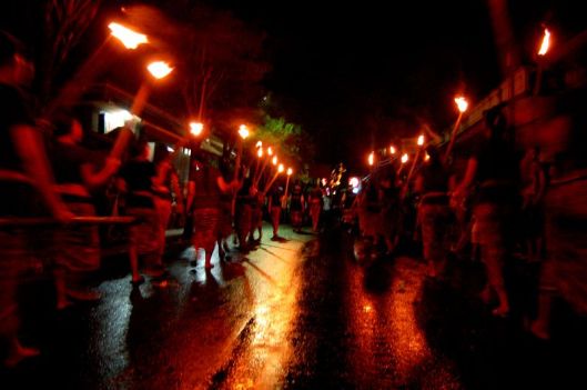 Balinezii întâmpină anul nou în linişte deplină, meditaţie şi post. Aseară, atmosfera a fost complet diferită. Toată lumea a ieşit pe străzi, să participe sau să asiste la parada creaturilor imaginare, demonice, numite ogoh-ogoh. O tradiţie veche, în care tinerii poartă creaturile pe uliţele satelor însoţiţi de făclii şi sunete de gamelan. E un spectacol pe care turiştii încearcă zadarnic să-l înţeleagă, indiferent câte fotografii ar face. Mâine, în prima zi a anului, ogoh-ogoh vor pieri în flăcări, într-un ritual special. După care viaţa va reveni la normal.