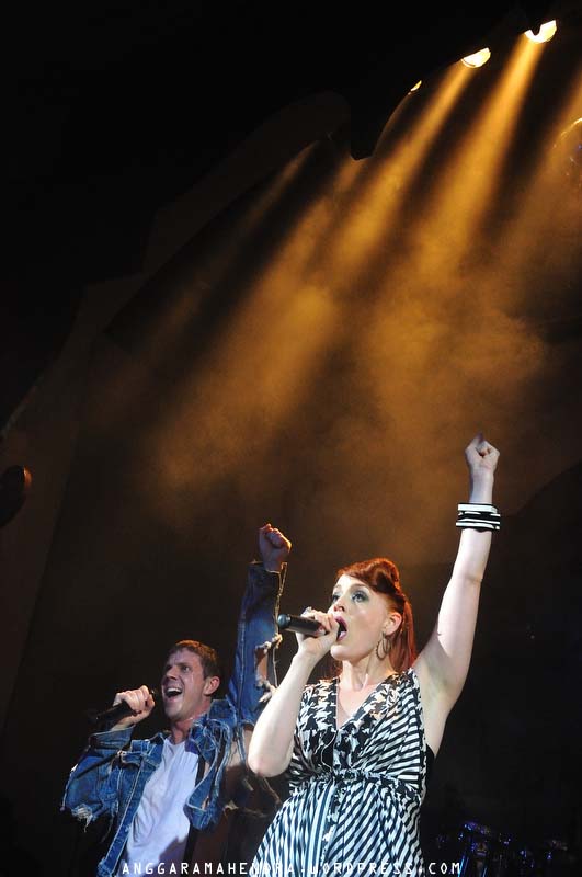 Scissor Sisters cîntă în formaţie de opt – doi vocalişti, bass, chitară, clape, tobe şi două domniţe la backing. Vocaliştii, un el, Jake Shears, şi o ea, Ana Matronic, fac un cuplu excelent pe scenă, cu un notabil plus de şarm şi dezinvoltură din partea lui. Chitaristul Del Marquis este zglobiu, în vreme ce chitaristo-basisto-multi-instrumentalistul Babydaddy pare mult prea serios pentru toată întreprinderea de pe scenă. Pe tobar nu l-am prea băgat în seamă, în principal din cauza faptului că se îndeletnicea doar cu „floricelele” pe cinele, ca un percuţionist de nuntă. Toba mare, ritmurile şi alte sunete s-ai dat de pe sampler .