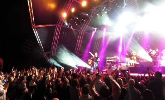 Dar, de fapt, toată lumea a venit pentru ceea ce urmează să se întîmple pe scenă. Pentru început avem o jumătate de oră de jazz și r&b cu Shameem, o celebritate locală născută dintr-un tată chinezo-malaezian și o mamă iraniană, care și-a lansat anul trecut albumul de debut. Pian fin, voce de jazz și mult bun simț. Apoi o avem pe Sharon Corr, nume care, din neatenție, nu mi-a spus nimic cînd l-am văzut pe afiș. Abia cînd i-am auzit vioara și vocea am sărit ca ars! Wow! E Sharon Corr de la The Corrs! Ce surpriză, ce bonus nesperat! Ne-a bucurat cu 45 de minute de cîntece made in Ireland, deopotrivă din discografia Corrs și de pe albumul solo „Dream of you”, scos în 2010. Cîntecul care m-a impresionat cel mai tare a fost o superbă variantă instrumentală a cîntecului tradițional irlandez „Women of Ireland”, același care care a fost folosit și de The Christians pentru hitul „Words”.
