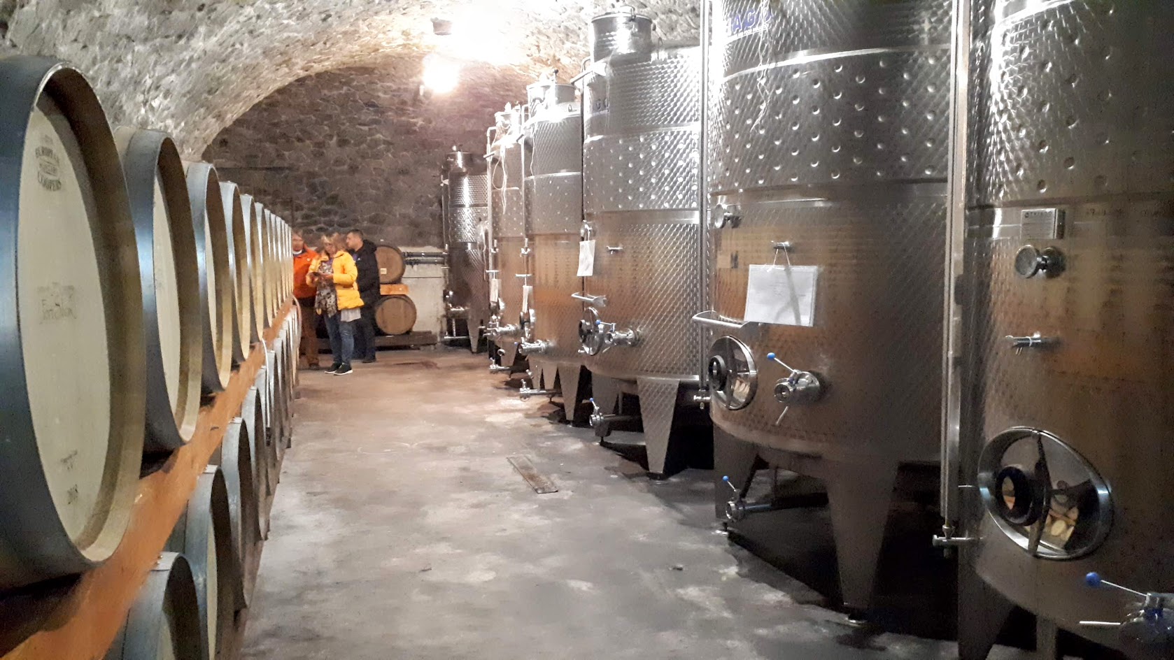 La Nachbil, aflată o aruncătură de băț distanță, ni s-au prezentat mai întâi facilitățile și procesul de producție. Pivnița a fost cel mai apreciat loc. Vinuri puse la învechit, vinuri cumpărate deja, dar lăsate acolo spre păstrare, vinuri noi, vinuri de colecție… Plus o tescovină făcută special pentru vizitatori. Nu numai vinurile scoase la testat, ci și bucatele ce le-au acompaniat la masa de după au fost producție proprie.
