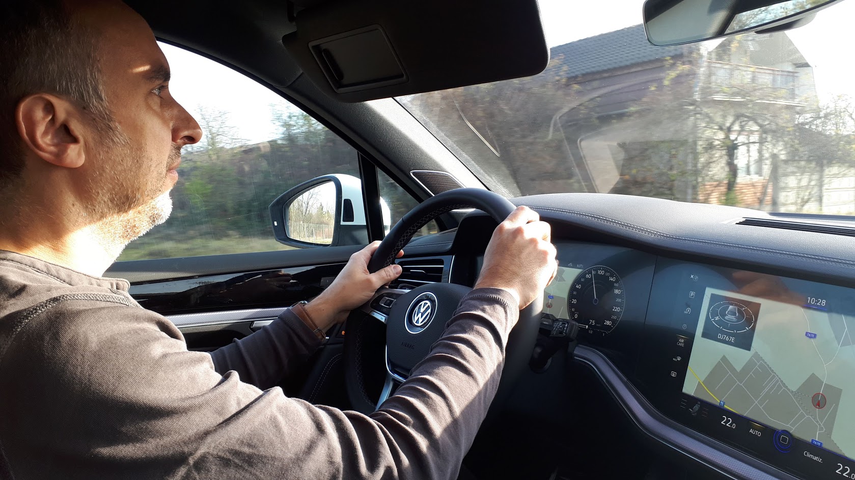 M-a adus un amic, în urmă cu câțiva ani, de la aeroportul din Budapesta. Am luat-o pe autostrada M3. Eram obosit și doream să ajung cât mai repede acasă, dar amicul de la volan părea că și-o dorește mai tare decât mine. La un moment dat, cu toată ploaia de pe drum, am realizat că aveam 165 km/h!!! Viteză, stabilitate, confort, căldură și un sfincter strâns, al meu. Am uitat să zic, amicul avea Touareg. Gata povestea.