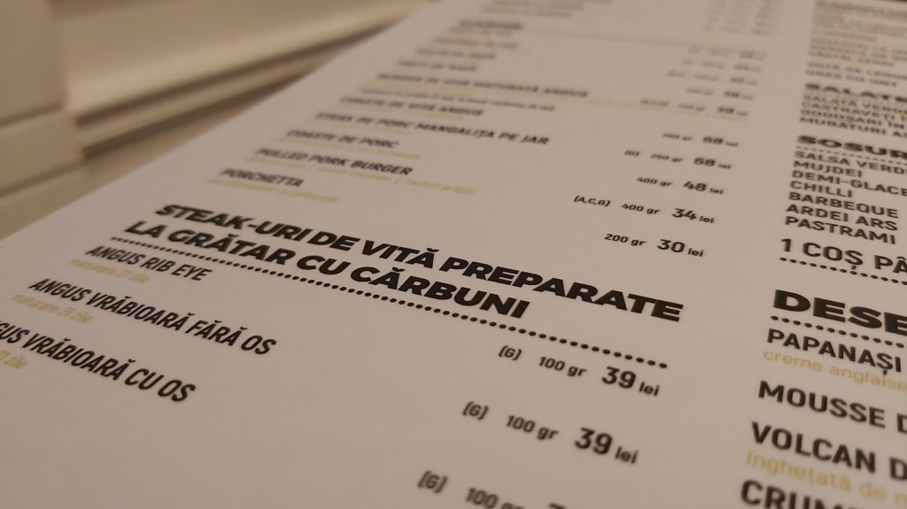 Pe scurt, s-a luat ce e mai bun de la fostele localuri și s-a alcătuit un meniu destul de scurt, dar surprinzător de divers, cu prețuri mult mai accesibile. Acolo unde a fost cazul, la unele porții care erau prea mari, s-a mai tăiat și din gramaj.