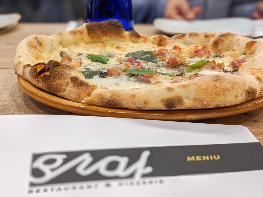 Și pentru că noua denumire este Restaurant-Pizzerie Graf, pizza cu maia a rămas și ea în meniu în suficiente variante pentru toate gusturile. De altfel, pizza poate fi comandată și pentru livrare la domiciliu.