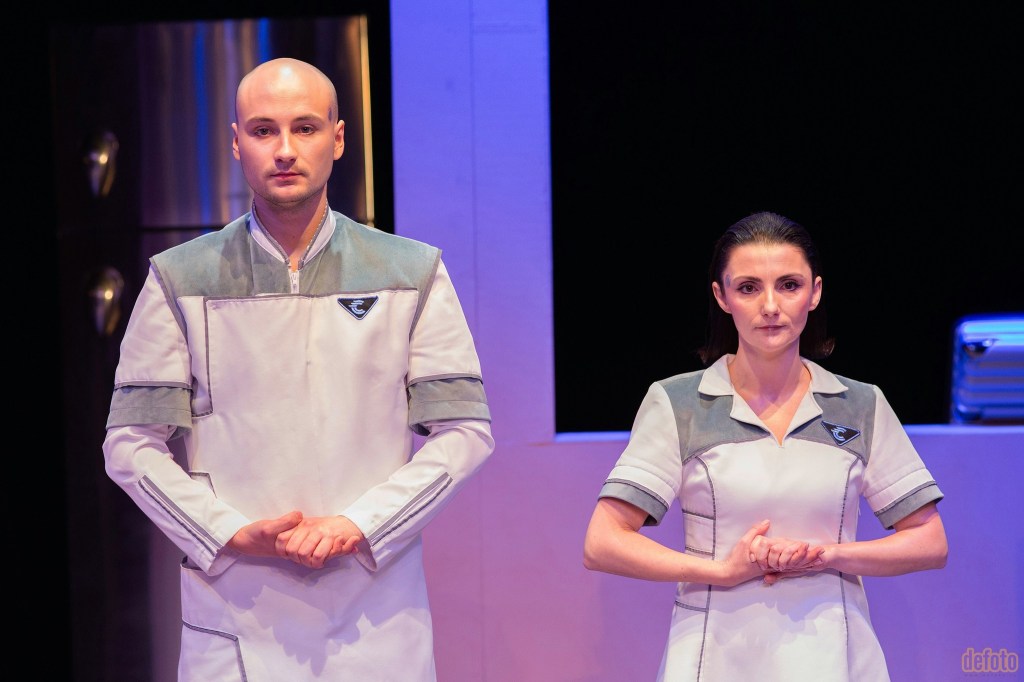 Am avut o mare curiozitate pentru viziunea scenică a regizorului Toni Nica, aflat la primul spectacol în liga mare. Susținut puternic de scenografia Oanei Cernea, tânărul regizor a coordonat un efort de echipă, a reușit să creeze contextul desfășurării dramei și le-a dat actorilor posibilitatea să inoveze acolo unde era loc sau chiar necesar. A folosit echilibrat tehnologia fără să o ducă în derizoriu (vă reamintesc subiectul – o femeie îngrijită de roboți umanoizi cu inteligență artificială), a punctat cu muzică bine aleasă (Gary Numan sau Daft Punk) și a păstrat cât s-a putut de bine ritmul spectacolului, păzindu-l de momente mai moi sau moarte. Momentul ”La La Land” merită o mențiune specială pentru joaca ingenioasă pe axa timpului, dacă asta o fi fost intenția.