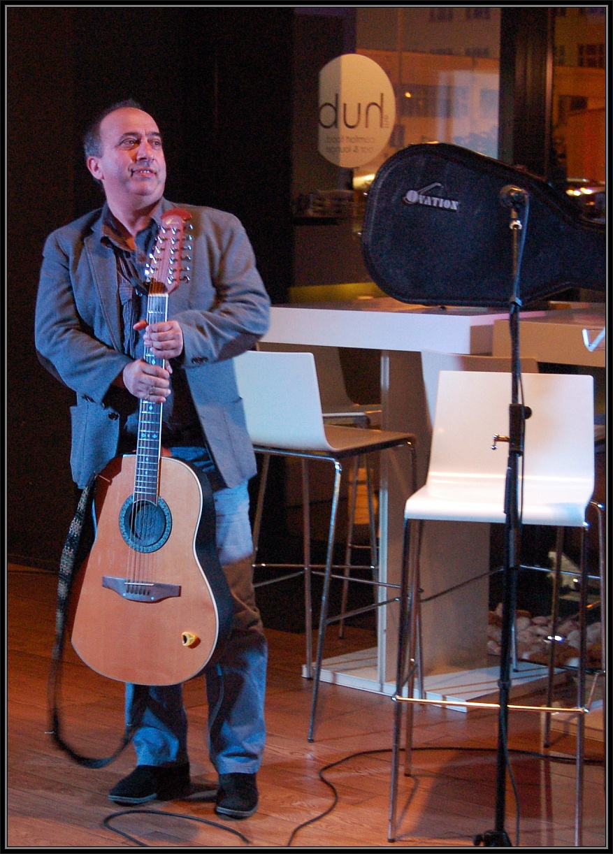 Emeric Imre şi-a susţinut spectacolul „Nebunul de alb” sâmbătă, 20 aprilie, la Hotelul Ramada din Oradea. Concertul, pus la cale de promotorul independent Lucia Bochiş, a adunat aproximativ 80 de spectatori – fani şi prieteni ai artistului, simpli melomani sau oameni ieşiţi sâmbătă seara în oraş. Un public poate un pic cam zgomotos pentru un concert folk, dar per ansamblu, atmosfera a fost agreabilă. Cel mai grozav a fost că gazdele de la Hotel Ramada au reuşit separarea fumătorilor de nefumători, fără să afecteze în vreun fel audiţia sau vizibilitatea. Admirabil!